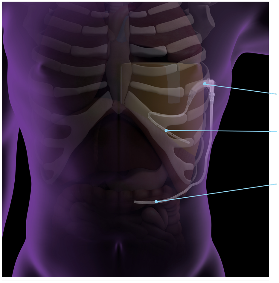 ACES™ (Automatic Continuous Effusion Shunt) uses respiratory motion to drive continuous, automatic transfer of pleural effusion fluid into the abdomen where it is naturally reabsorbed—without the need for pleurodesis or external drainage catheters.1.2
