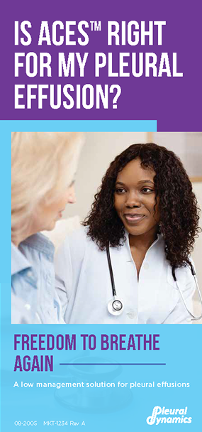ACES was created to give you more freedom to enjoy life, without frequent hospital visits or daily drainage at home. Other treatments for pleural effusions can be uncomfortable, requiring external equipment and ongoing care. ACES is different—there’s no pleurodesis and no external drainage catheter.